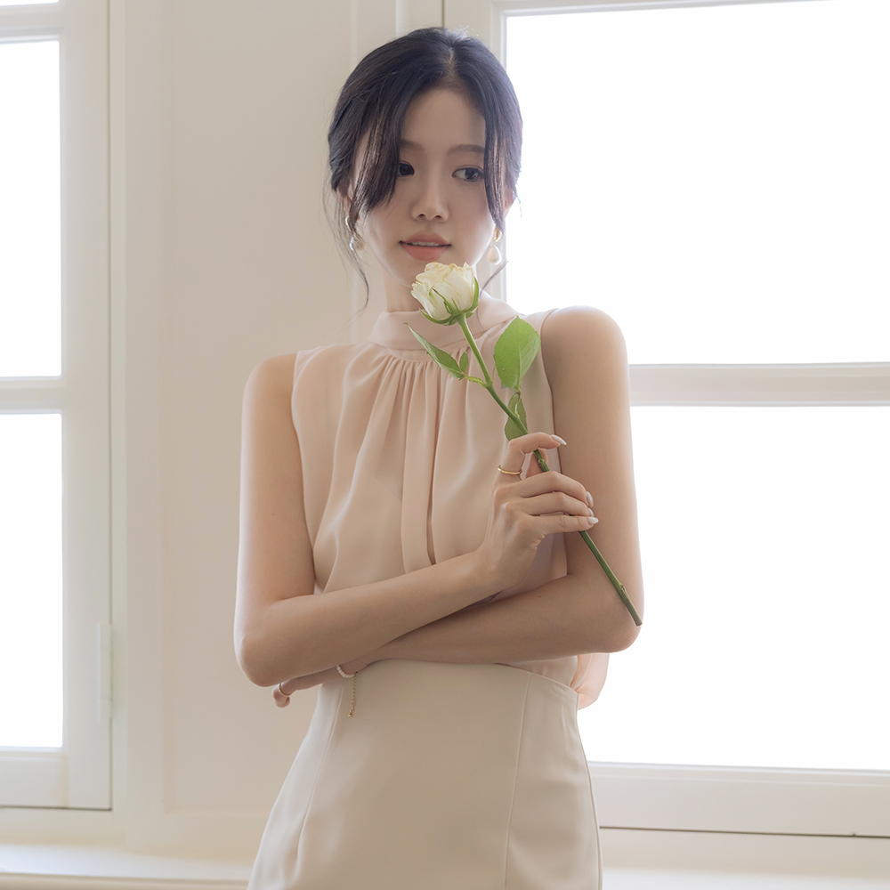 シャーリング ロールネック スカーフ ブラウス Ⅱ