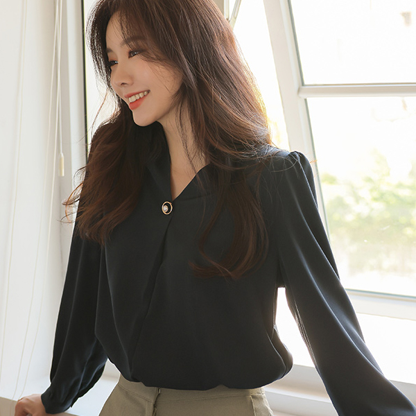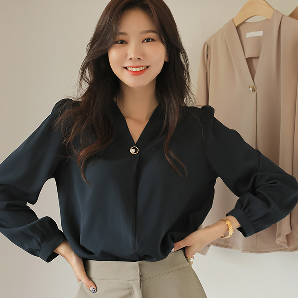 ブイネック ゴールドリング 真珠 ポイント ブラウス