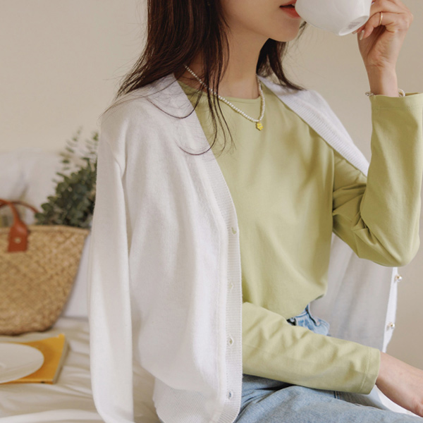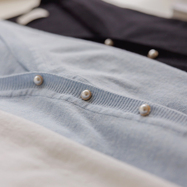 ブイネック 真珠 ポイント デーリー カーディガン