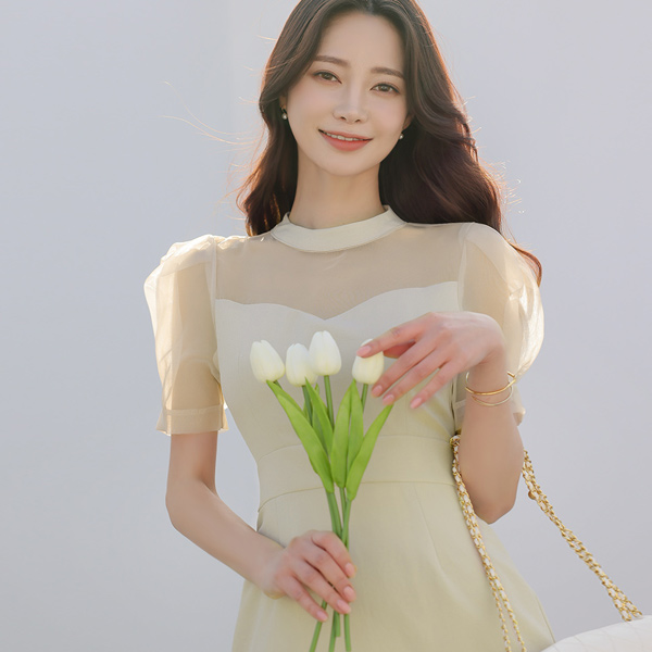 넥 라인과 소매 라인은 가벼운 오간자 소재가 더해져