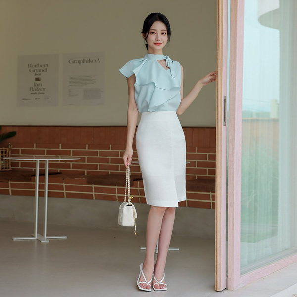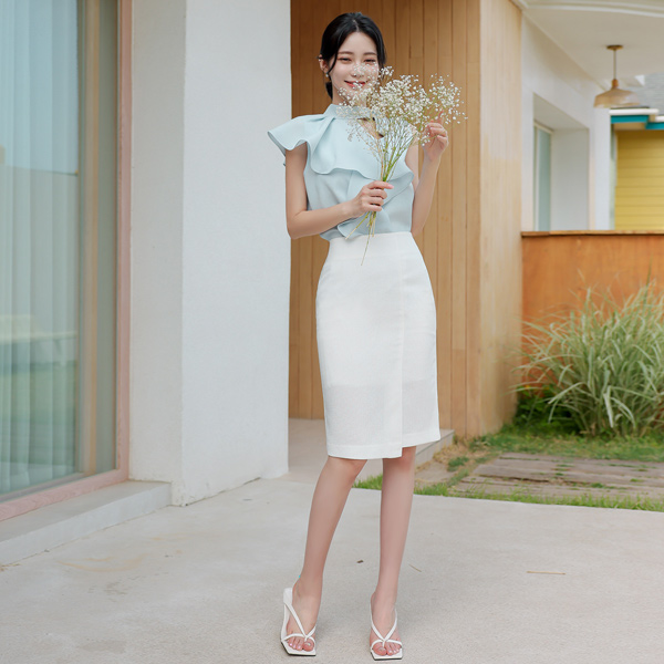 전체적으로 슬림하게 핏되는 H라인 스커트로
