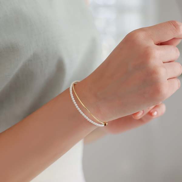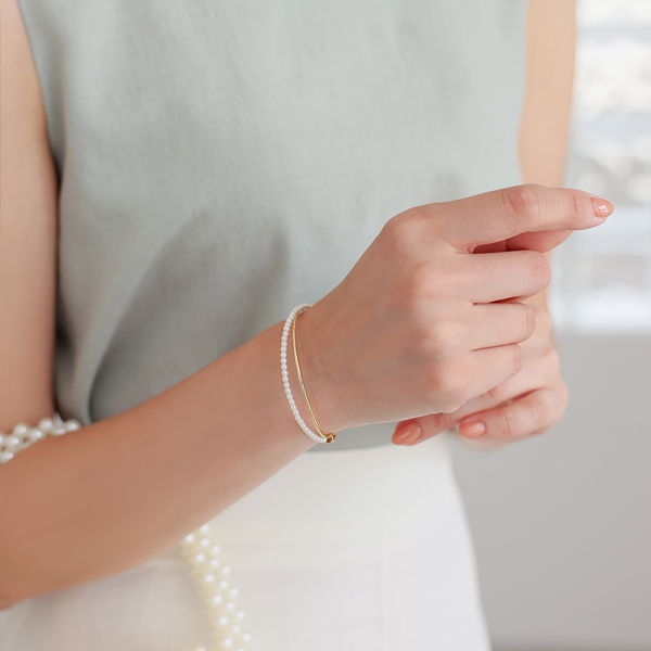 真珠 レイヤード ゴールド クロス ブレスレット