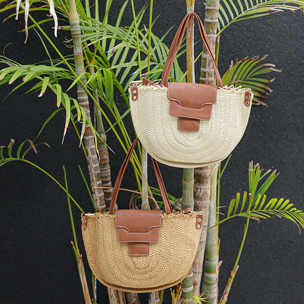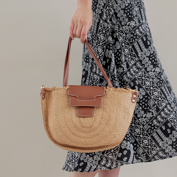 가죽 배색 디테일로 포인트를 더해준 라탄백을 소개해드려요