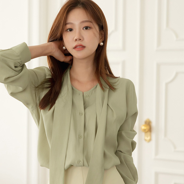 秋 ODE ピンタック タイ ブラウス