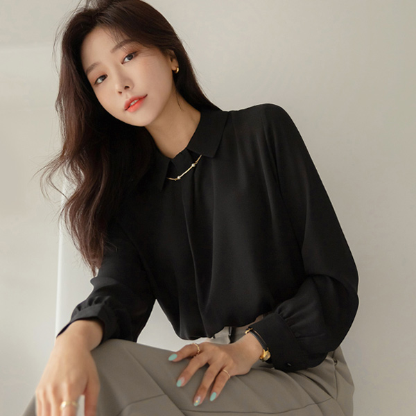 真珠&ゴールドバー装飾 チェーン ネック ポイント ブラウス