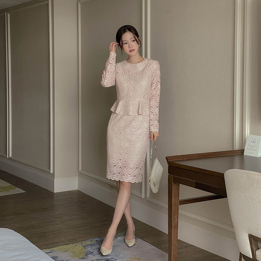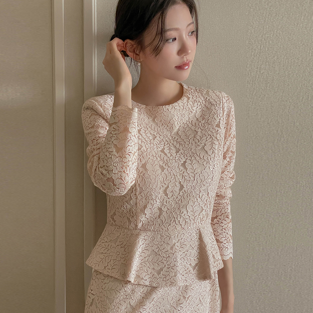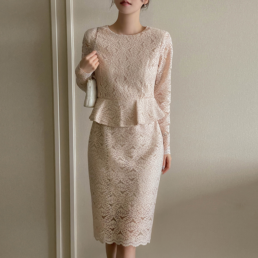 전해지는 레이스 페플럼 원피스에요♡