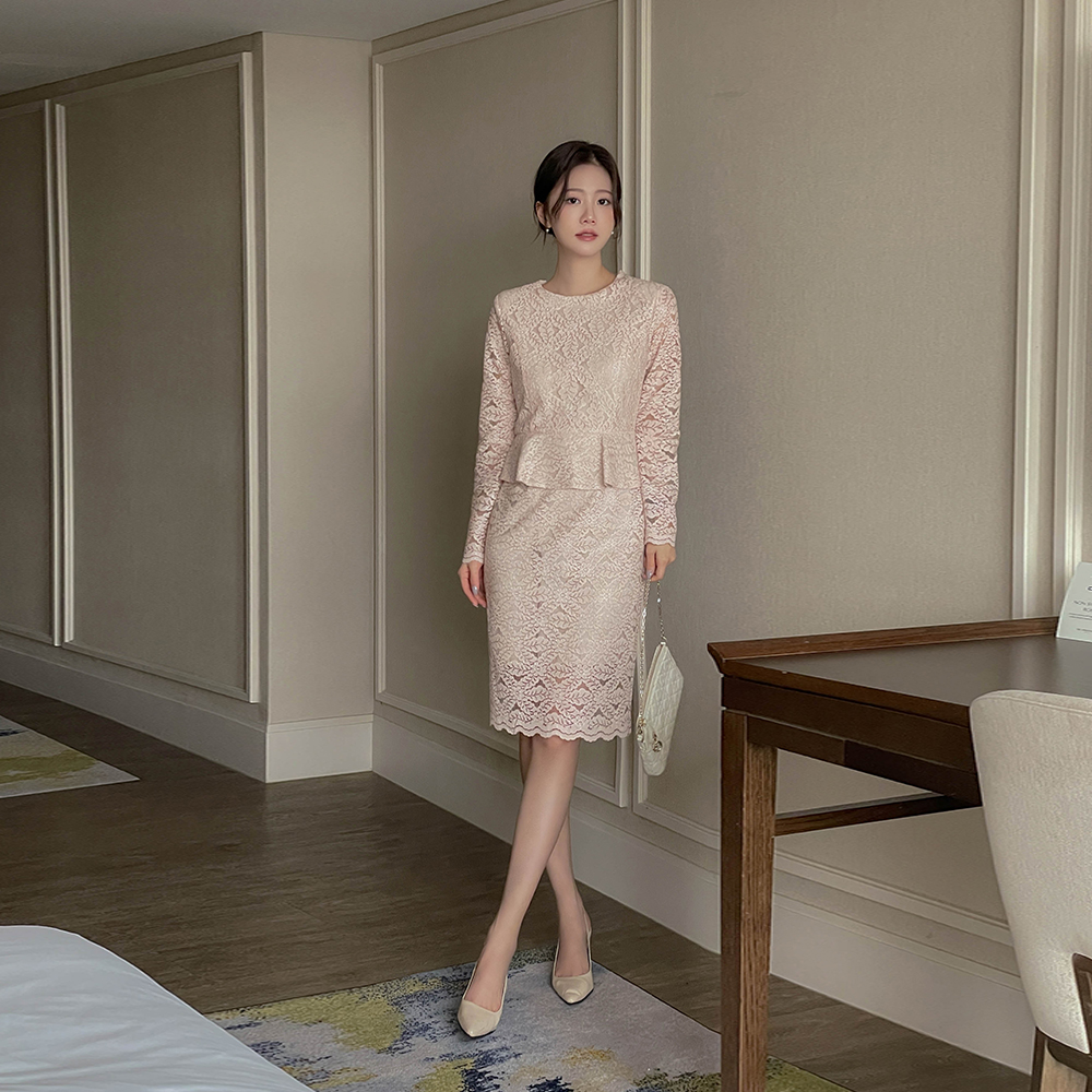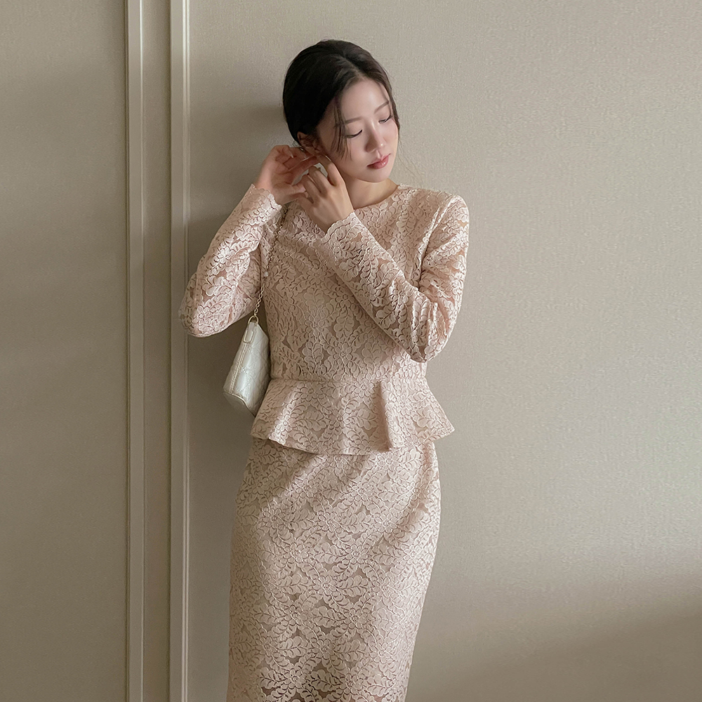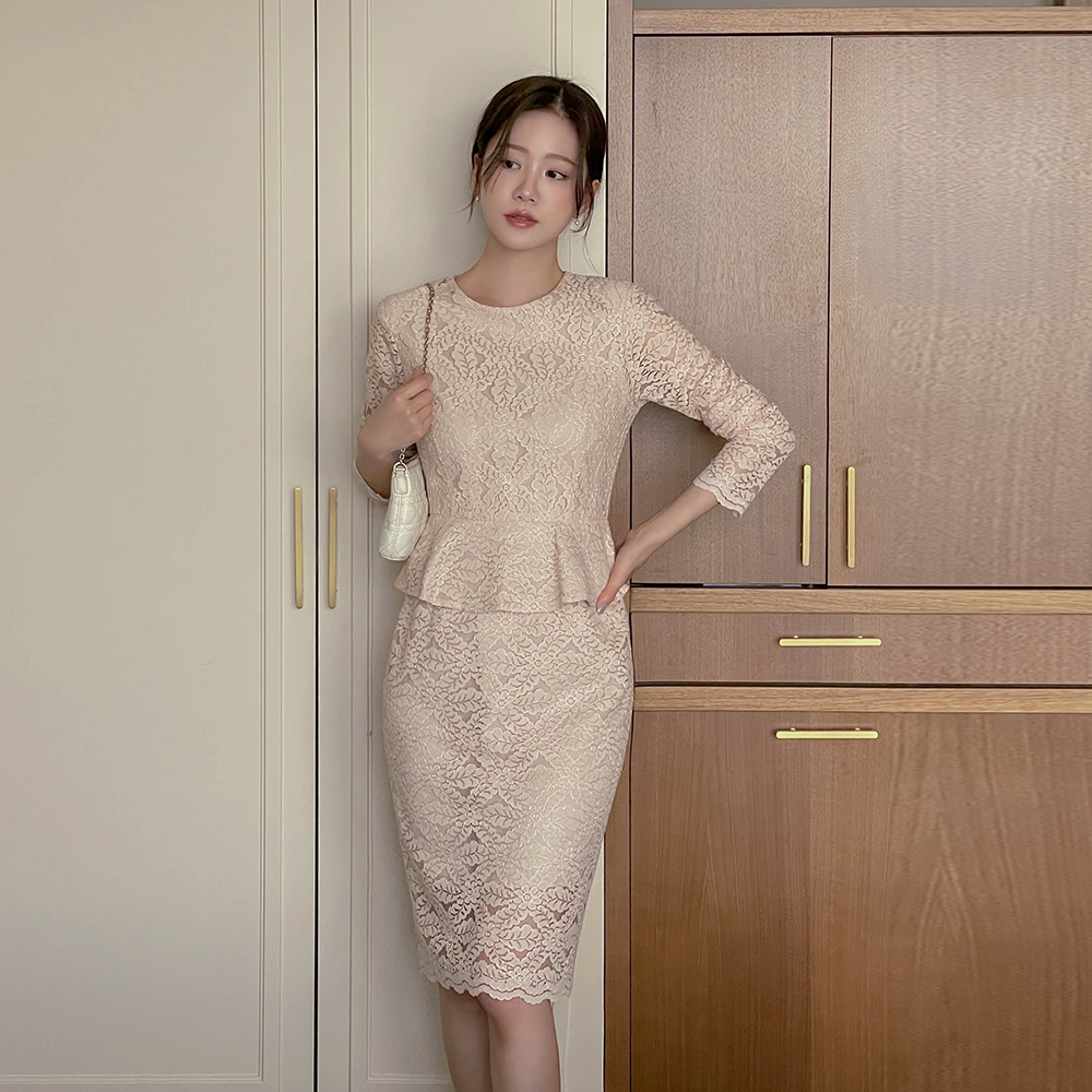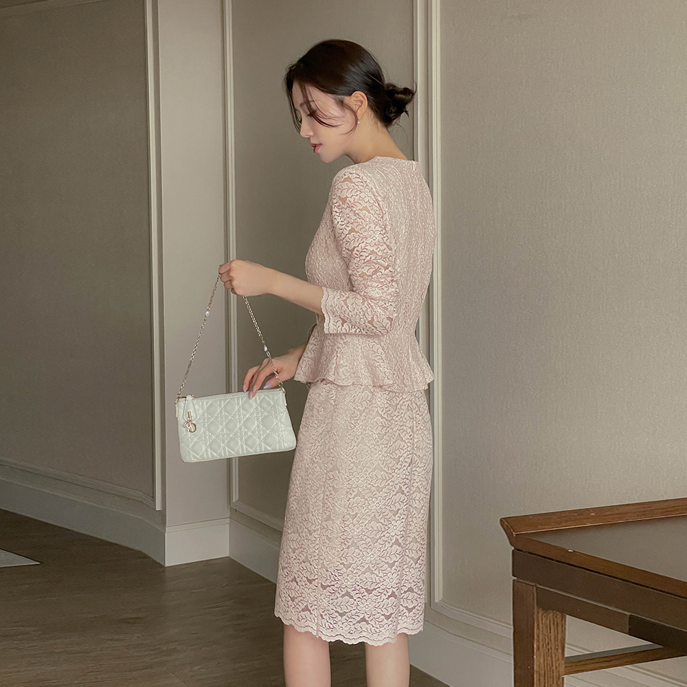 전해지는 레이스 페플럼 원피스에요♡