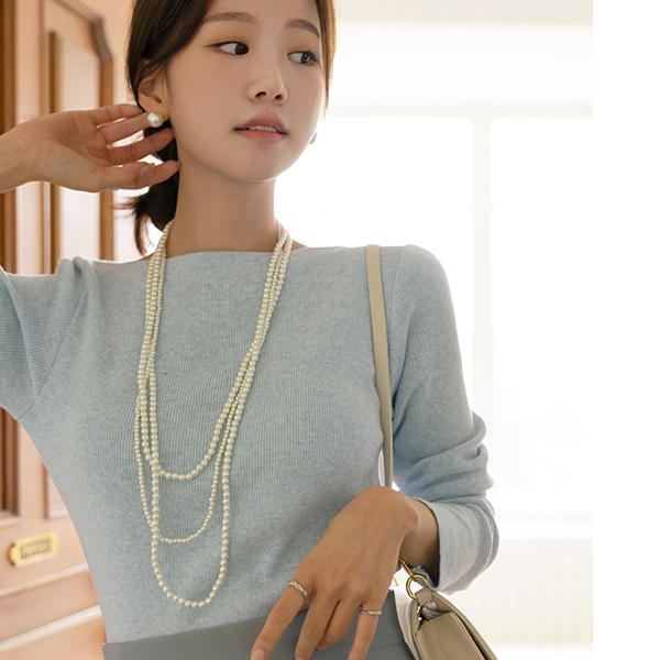 ロマンチック パステル カラー ボートネック デーリー ニット