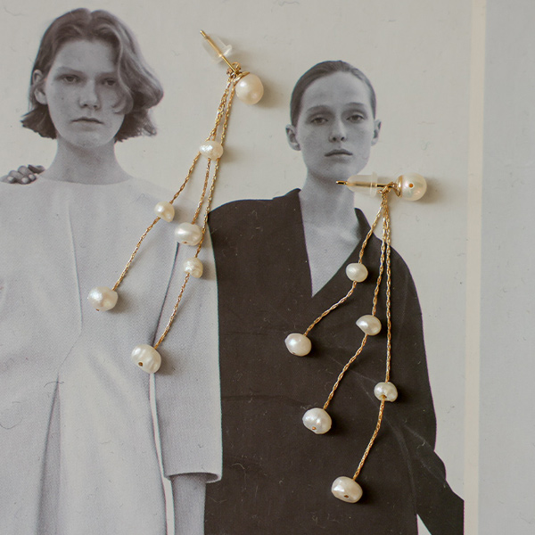 トリプル ドロップ 真珠 イヤリング