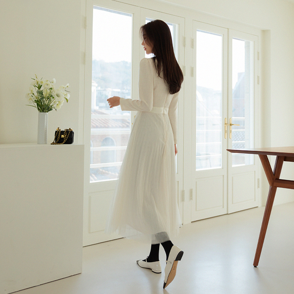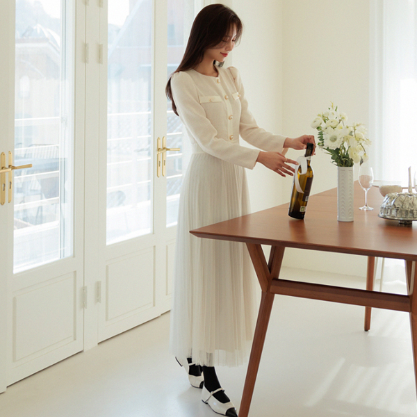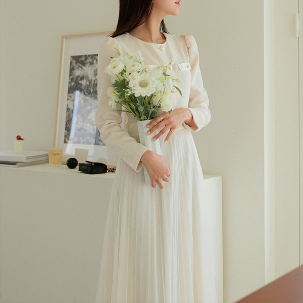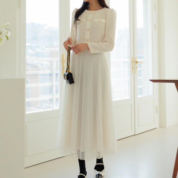 ロマンチック Coco 真珠ボタン チュール スカート ワンピース