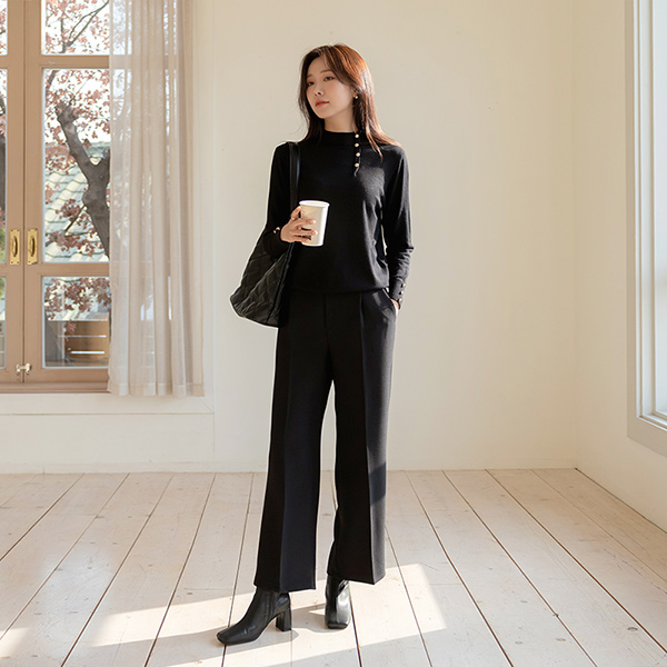 百合 ゴールド ボタン ソフト タッチ セミハイネック ニット