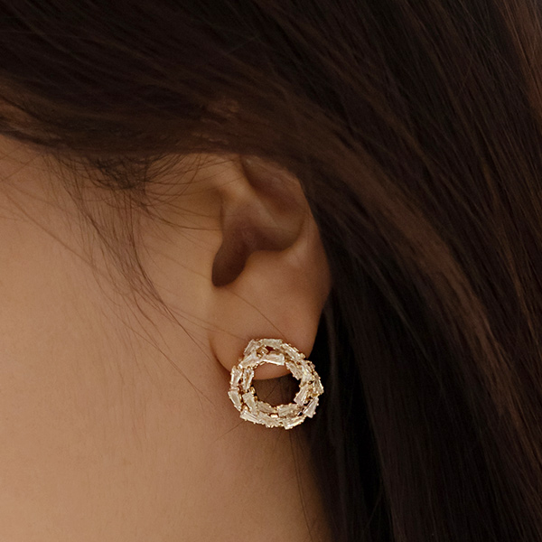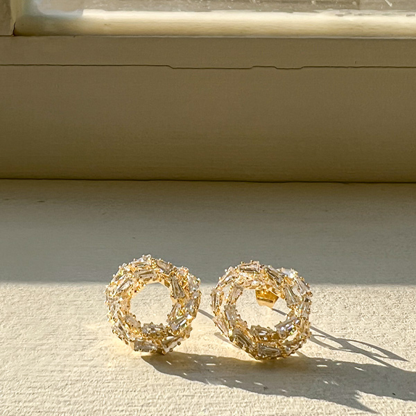 ラグジュアリー ダブル ラウンド キュービック イヤリング