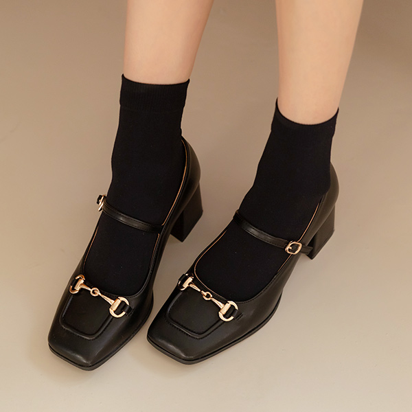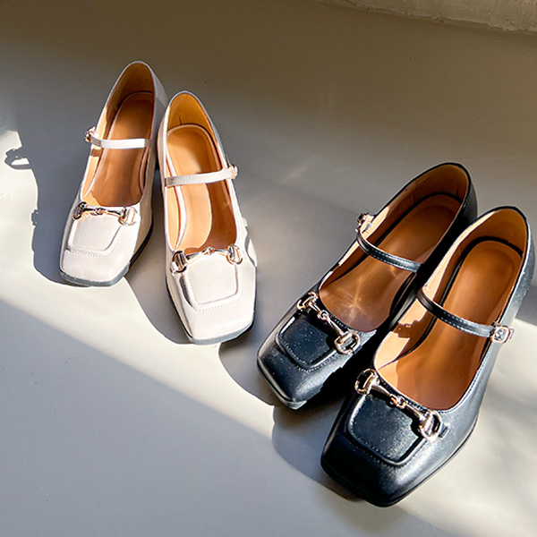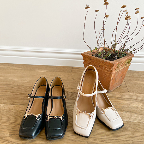 ゴールド バックル スクエアトー メリージェーン シューズ