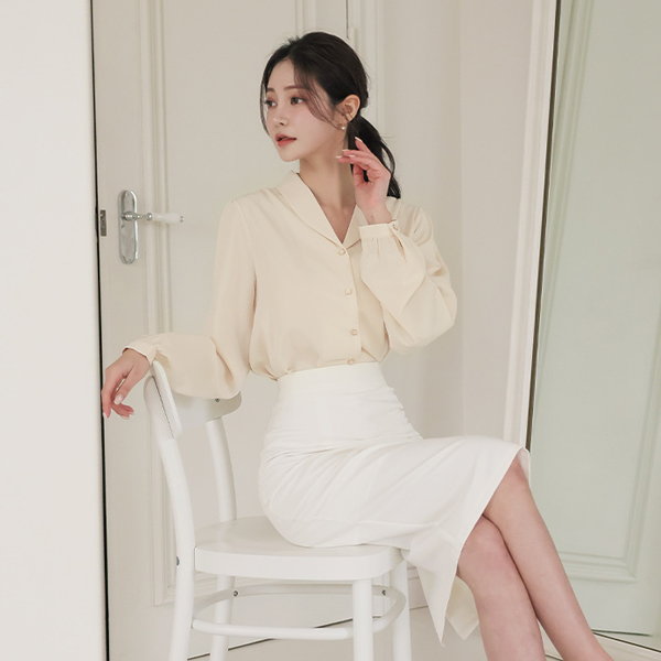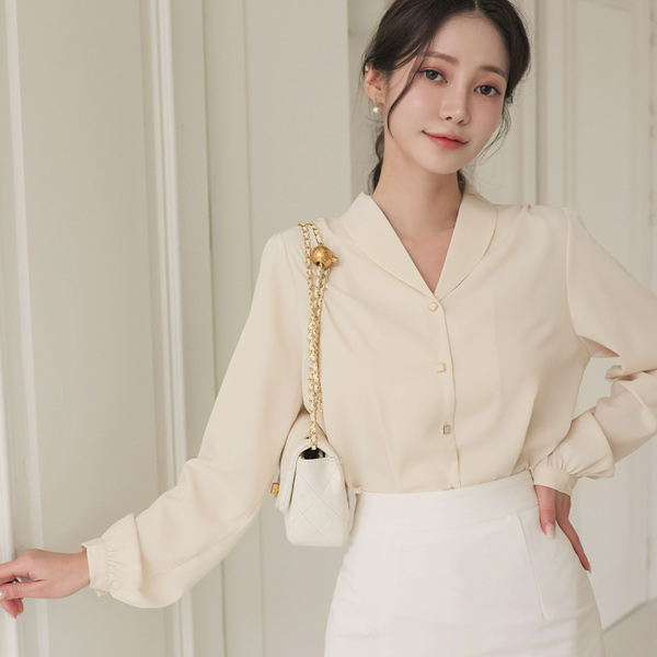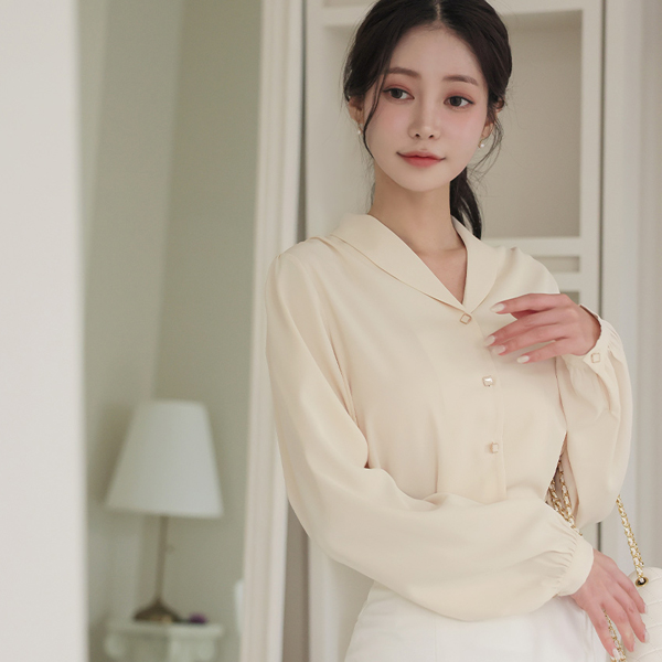 ミニ ショールカラー スクエア ボタン ブラウス