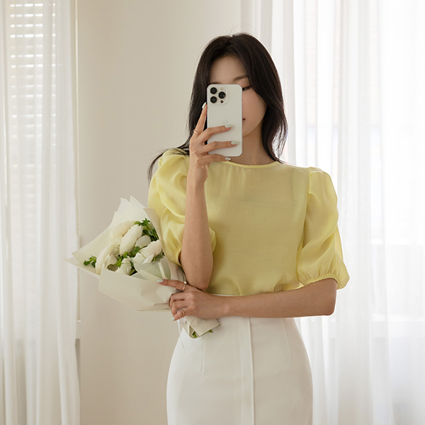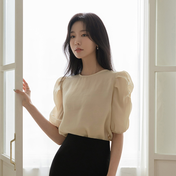 ロマンチック シースルー シャーリング パフ テンセル ブラウス