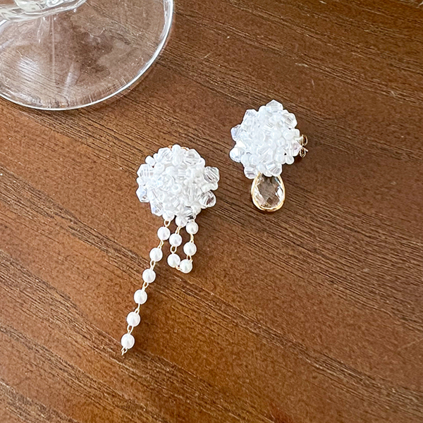 ラグジュアリー 真珠 クリスタル アンバランス イヤリング