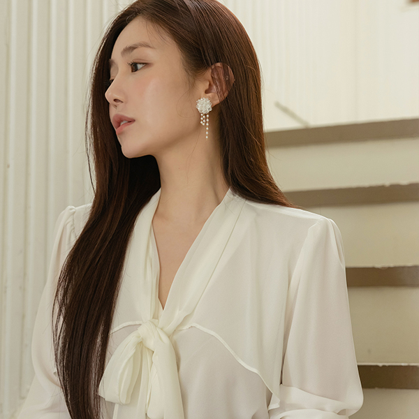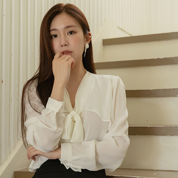 フェミニン シフォン リボン·ネックライン ブラウス