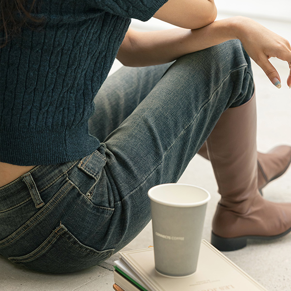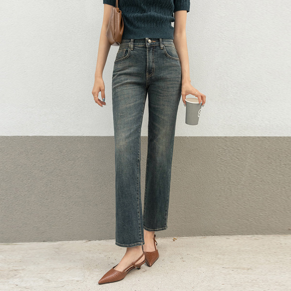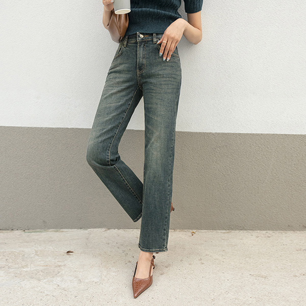 楽な スリム ストレート Stretchy-Waist 細かく美しい デニム パンツ