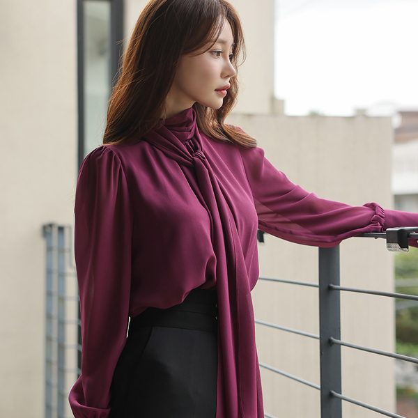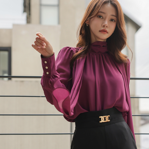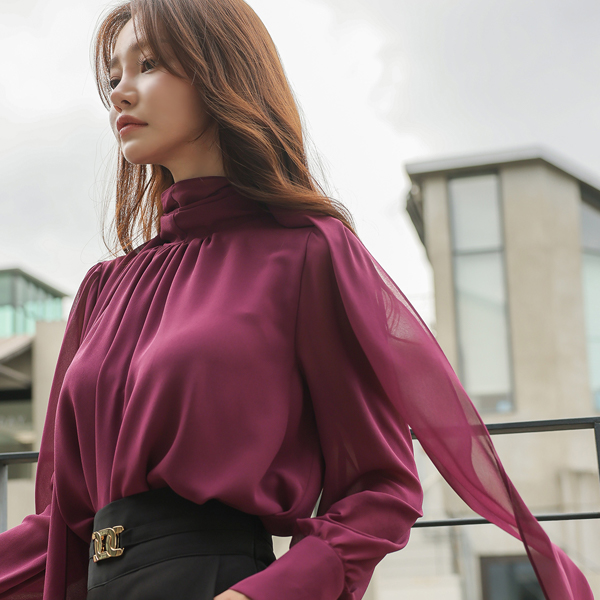 シャーリング ハイネック スカーフ ブラウス