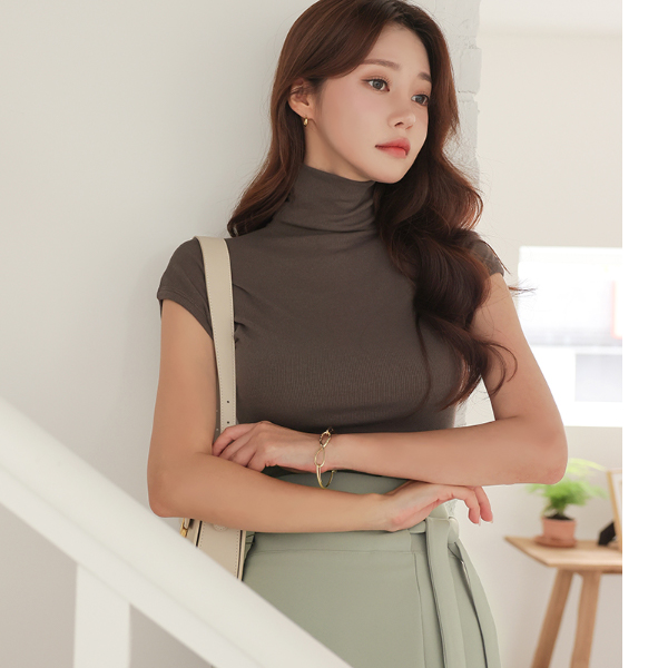 ハイネック キャップップ コール天 スリム 弾力 ティーシャツ
