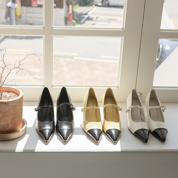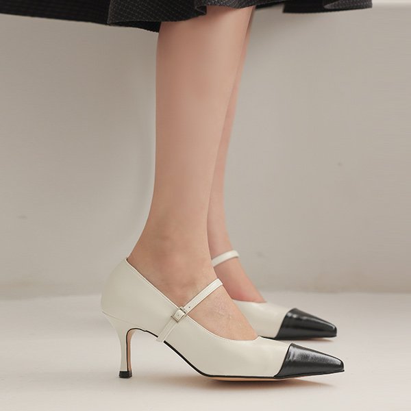 ツートーン コンビ ストラップ メリージェーン ヒール