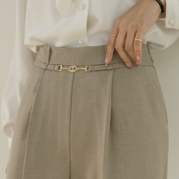 スリム バックル ベルト 飾り ピンタック ワイド スレックス