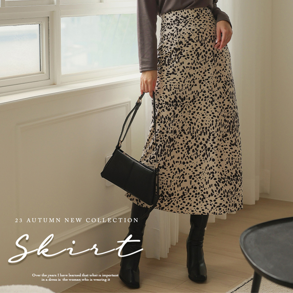 ヒョウ パタン ポイント フレア ロング スカート