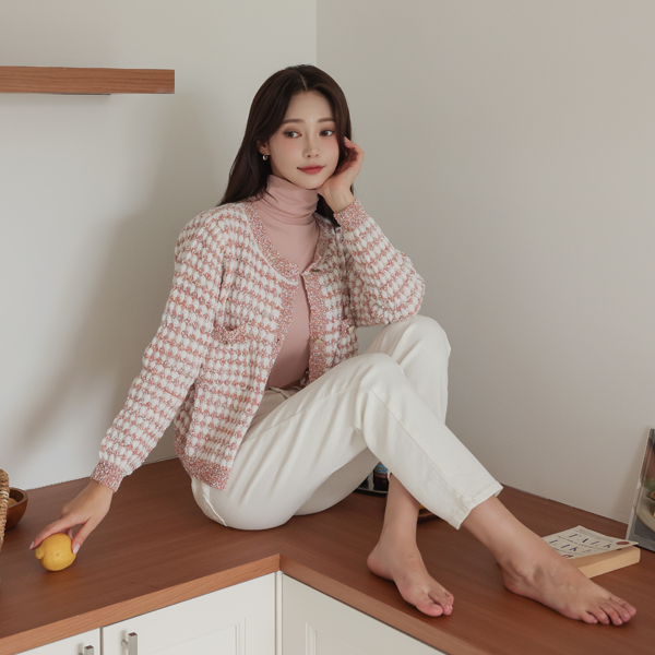 ふわふわ ミックス カラー ツイード ニット カーディガン