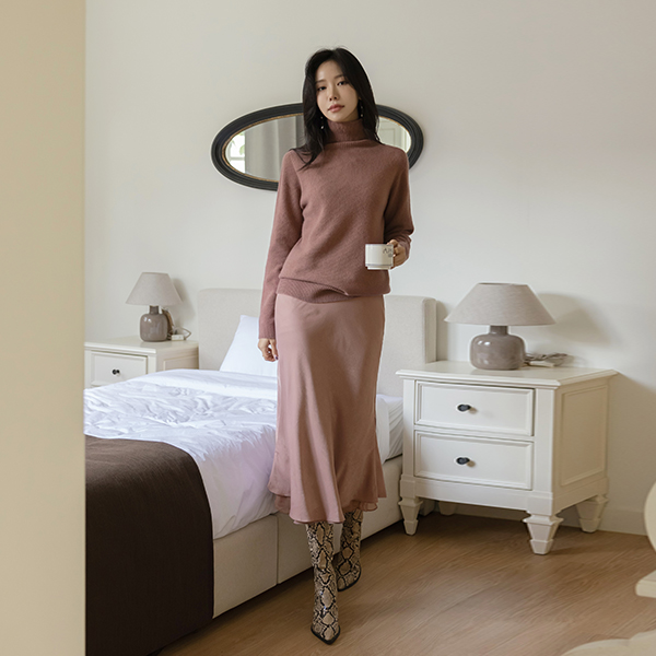 ムード カラー ラクーン Whole Garment とっくりえり ニット