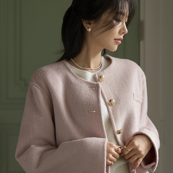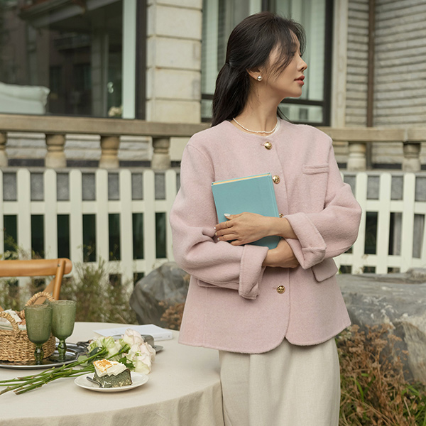 ふわふわ ラブリー カラー ウール ハンドメード ハーフ ジャケット