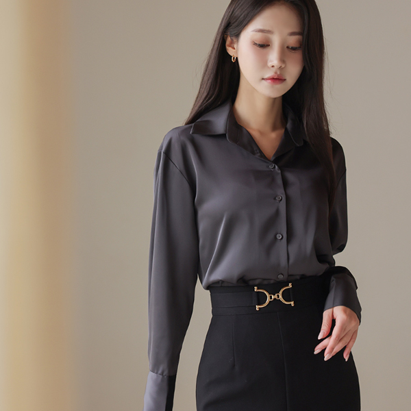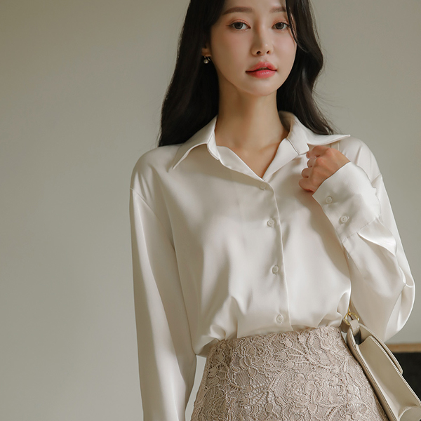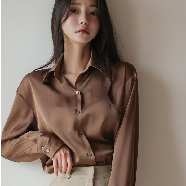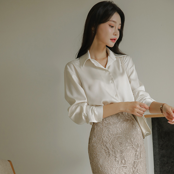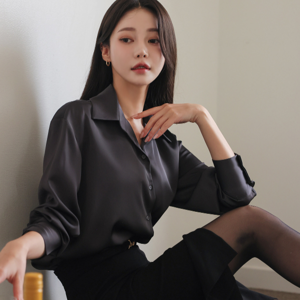 ラグジュアリー グロッシー サテン ベーシック ブラウス