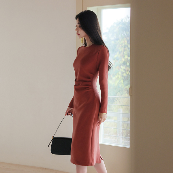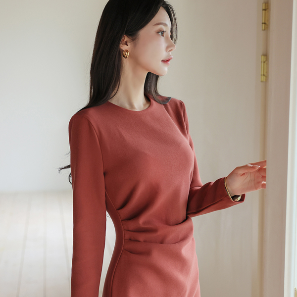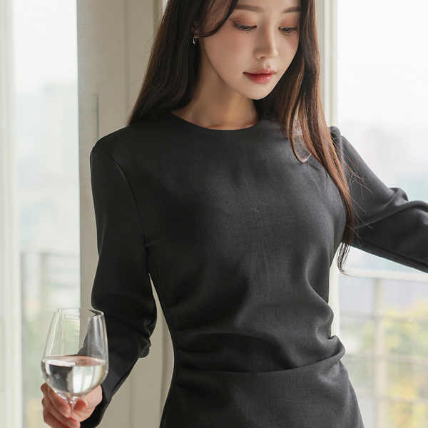ラウンドネック サイド シャーリング Hライン 弾力 ワンピース