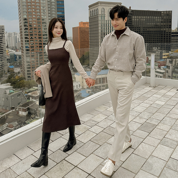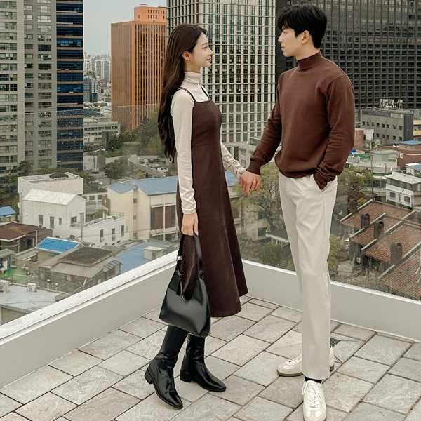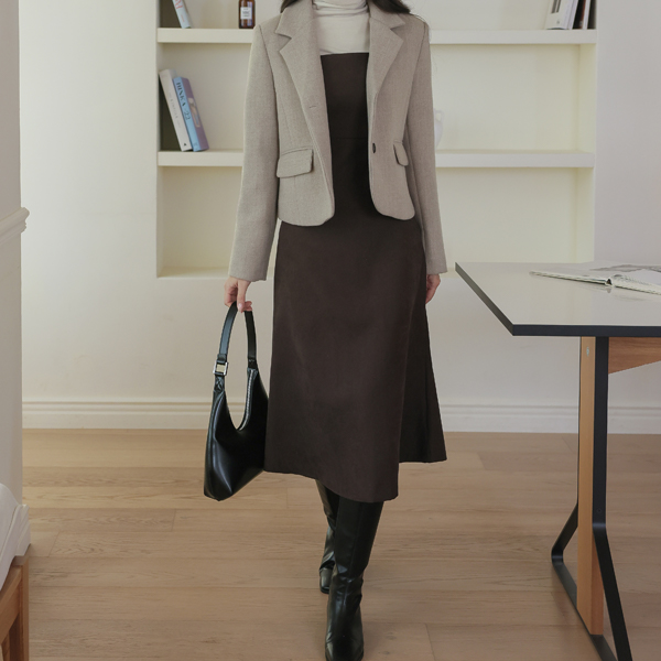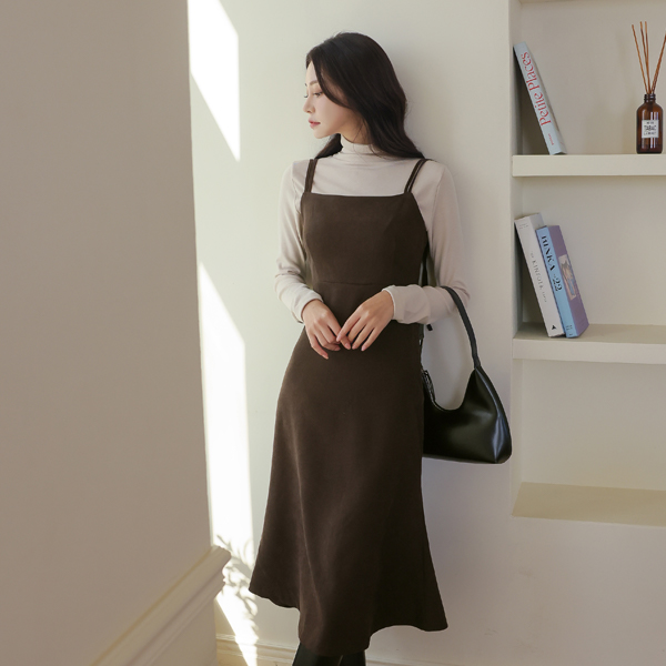 ダブル ストラップ コーデュロイ ビュスチエ ロング ワンピース