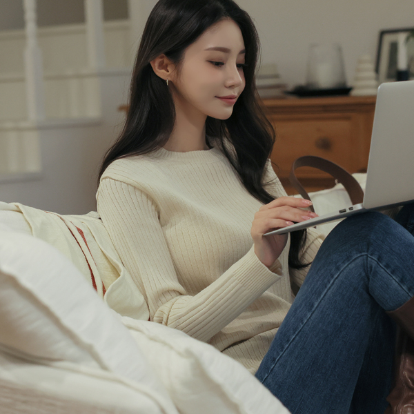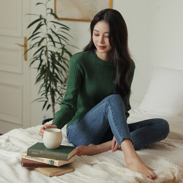 ベーシック ラウンドネック コール天 ニット
