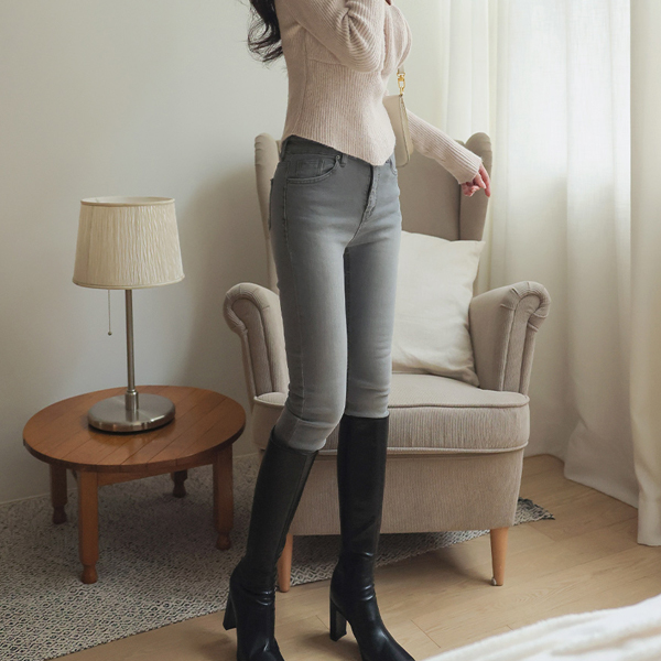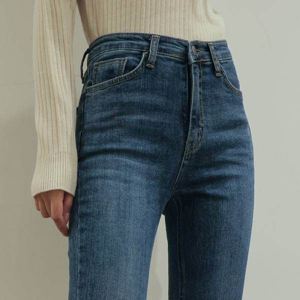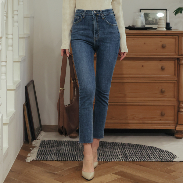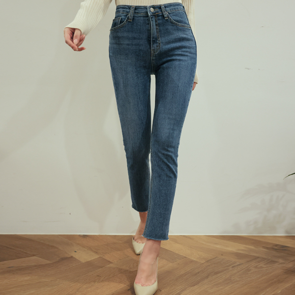 デーリー 隠れた バンディング 裾上 カッティング スリム ストレートフィット デニム パンツ
