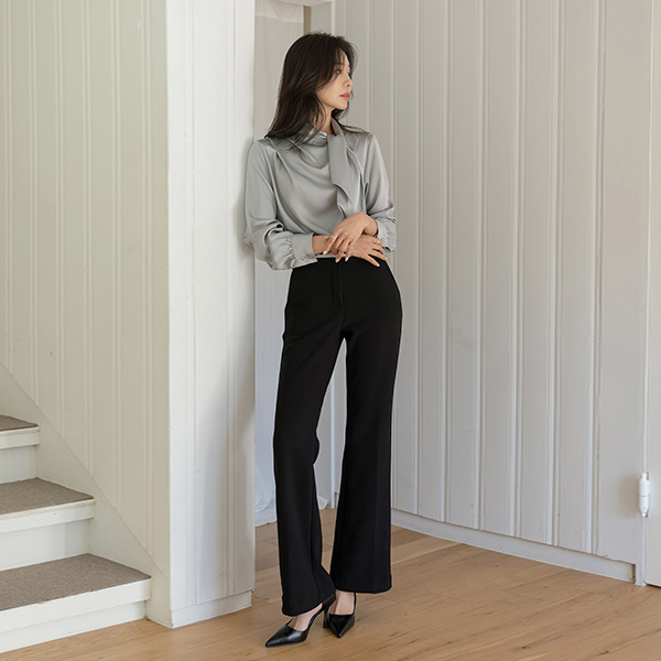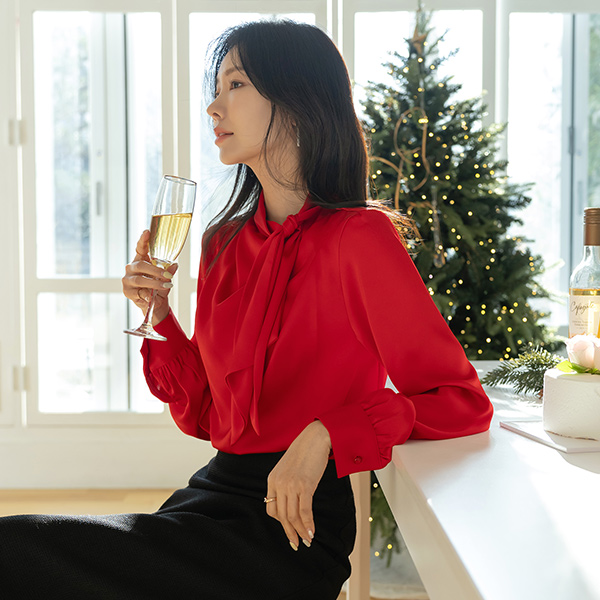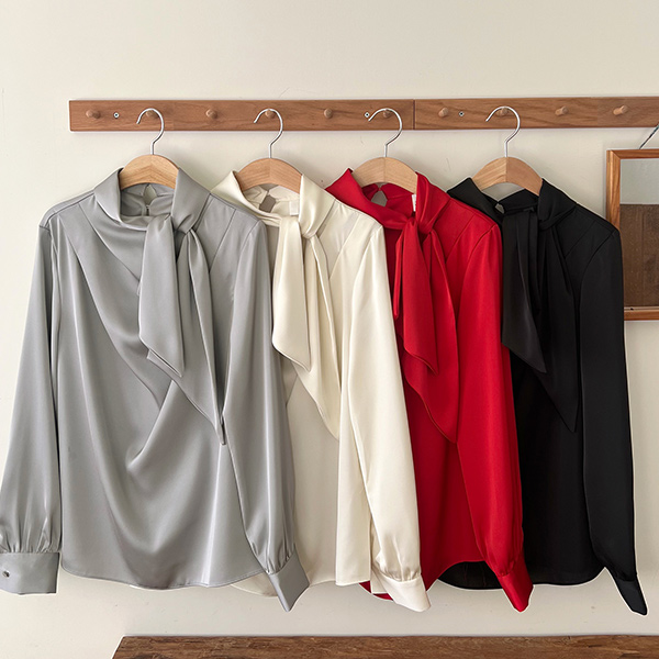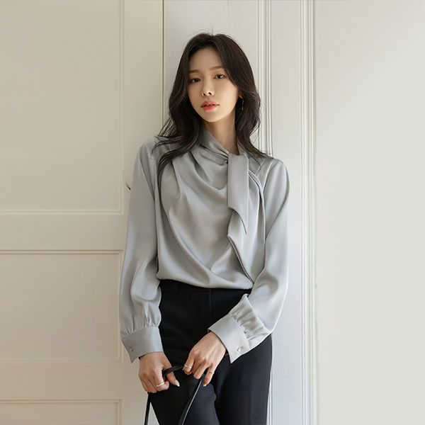ソフト グロッシー 미즈 タイネック ブラウス