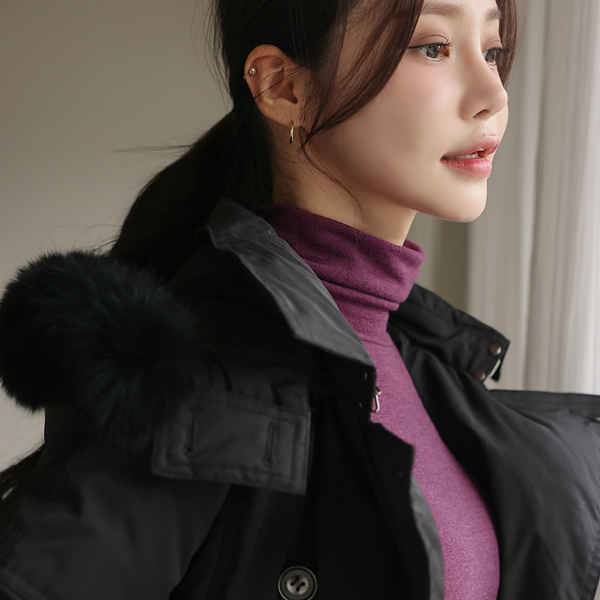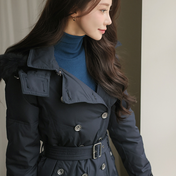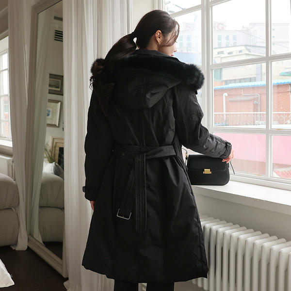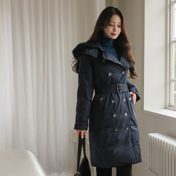 リアル ダックダウン フォックスパー ダブル ボタン ベルティード ロング バディング