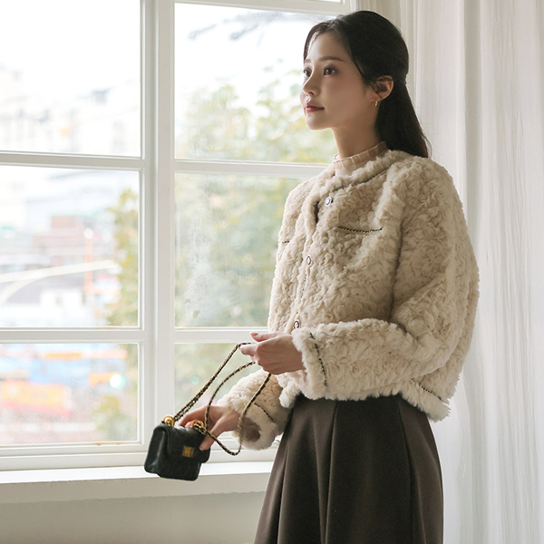ふわふわ フェイク ミンクファー ツイスト 裏地 ジャケット