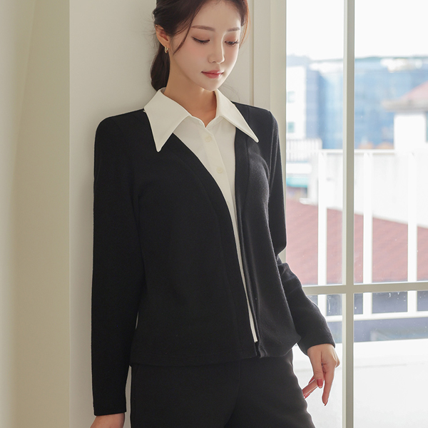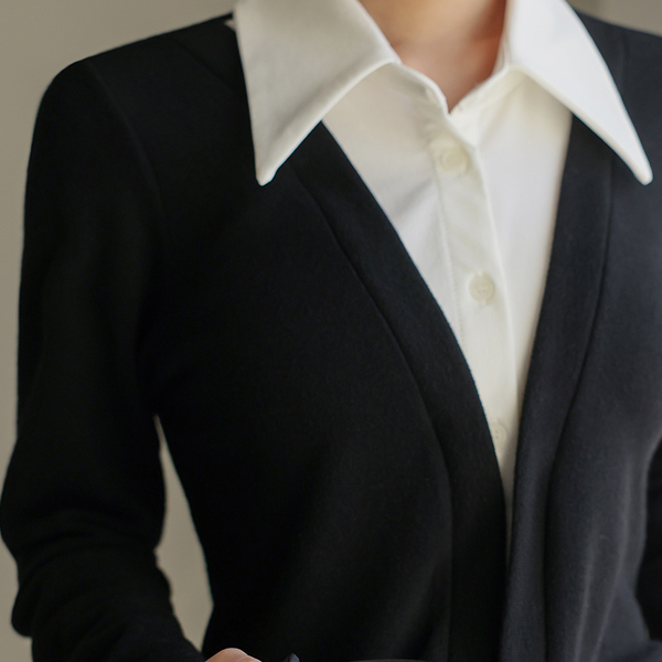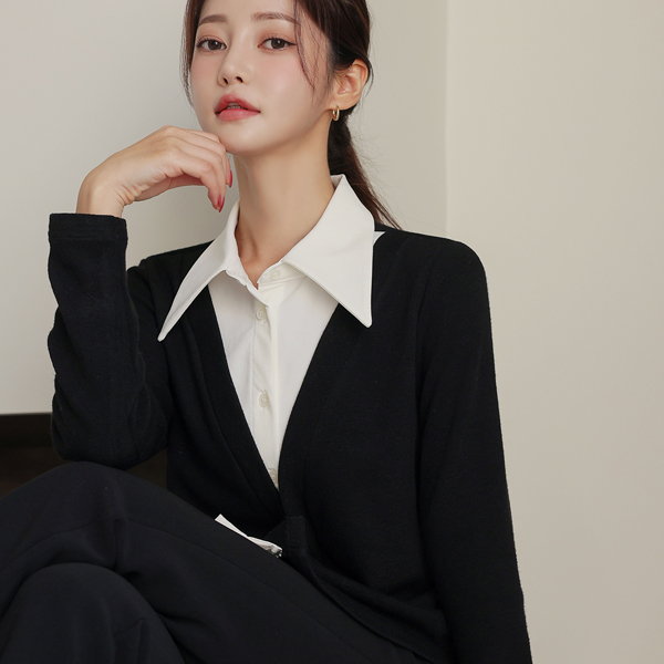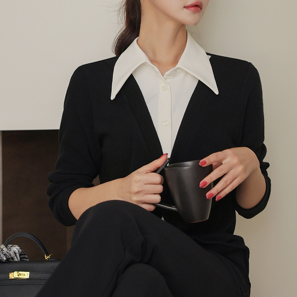 ワイド カラー シャツ レイヤード カーディガン ブラウス