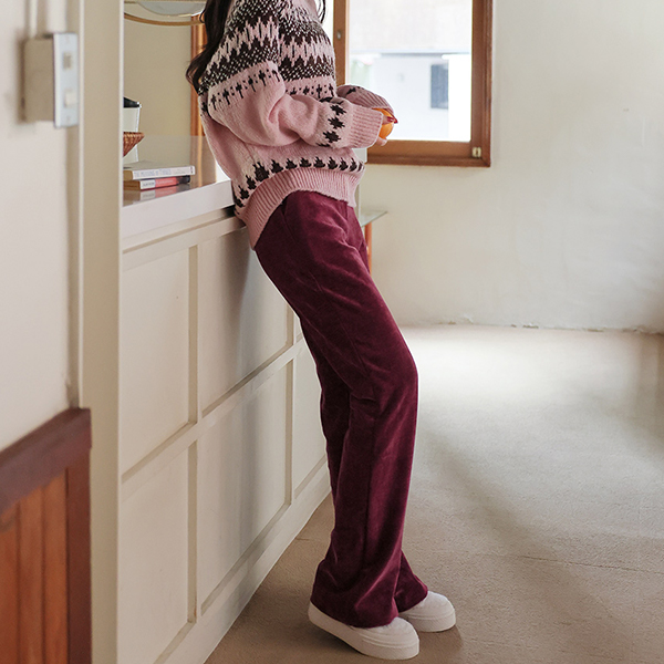 やわらかい ウインター ベルベット コーデュロイ ブーツカット パンツ