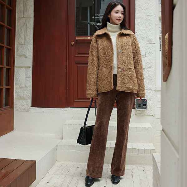 Teddy ブークレ フラット カラー ウール ジャケット (キルティング裏地)