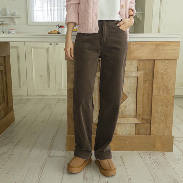 エンボスレザー ワイドフィット コーデュロイ パンツ