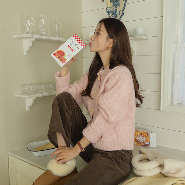 ラブリー ボタン 団団 ウール カーディガン