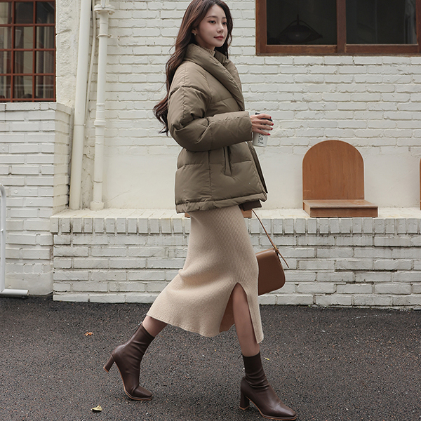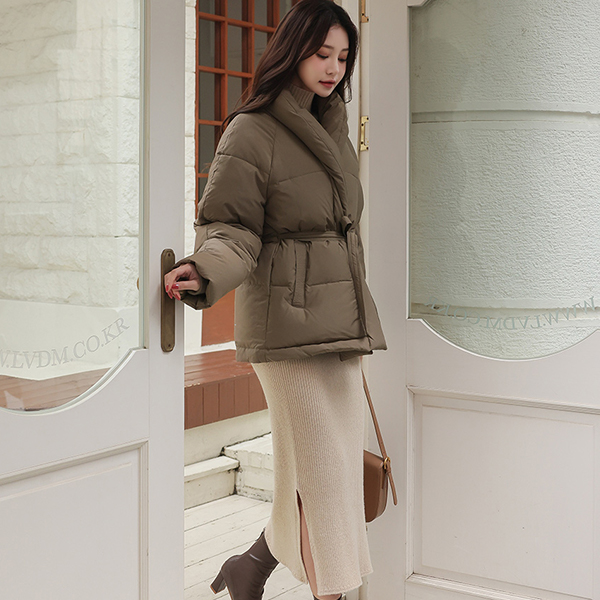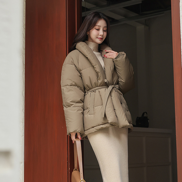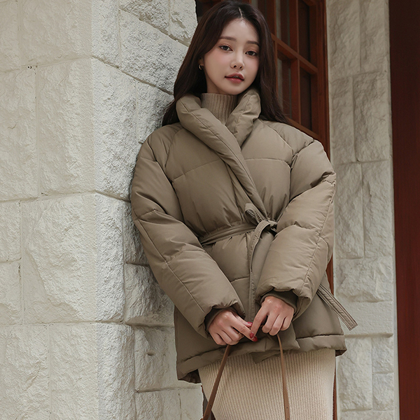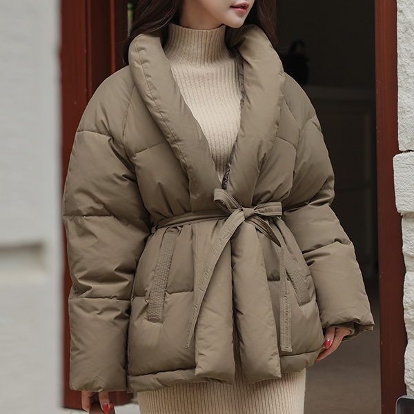 ショールカラー ダックダウン ベルティード バディング ジャンパ