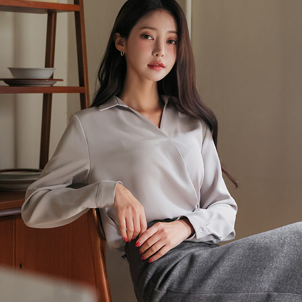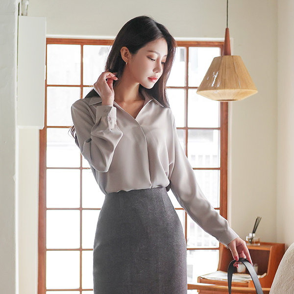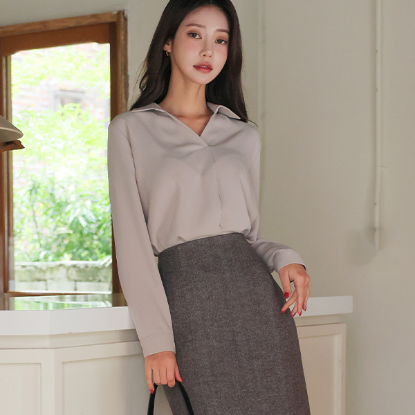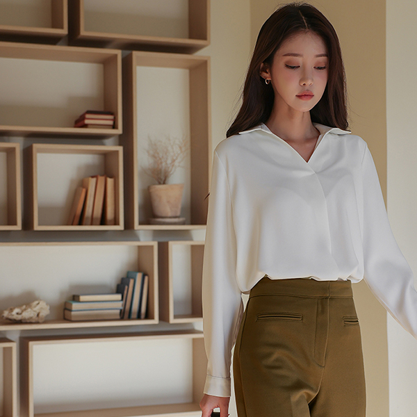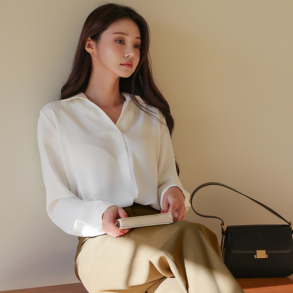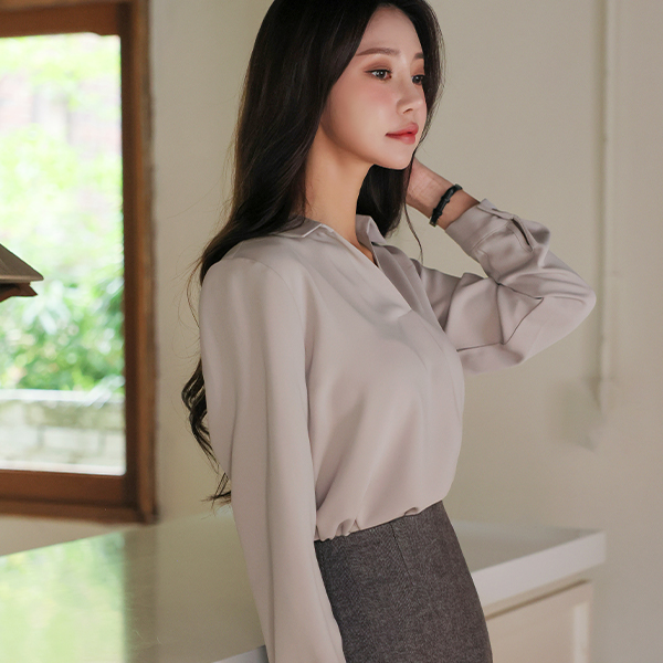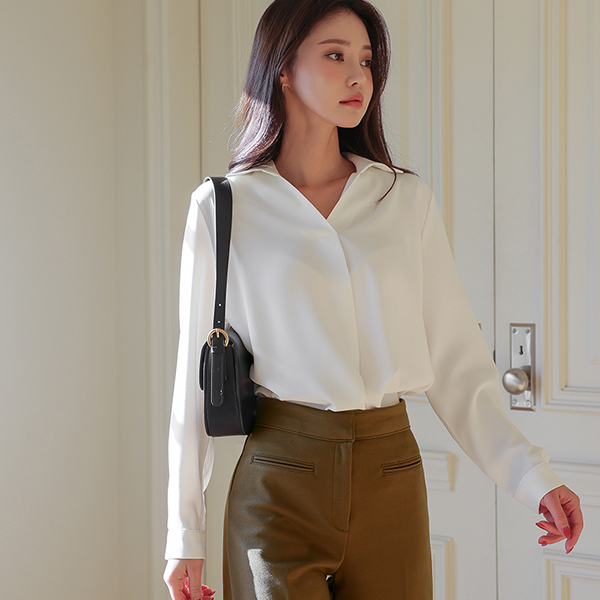 シンプル 半オープン カラーネック ブラウス