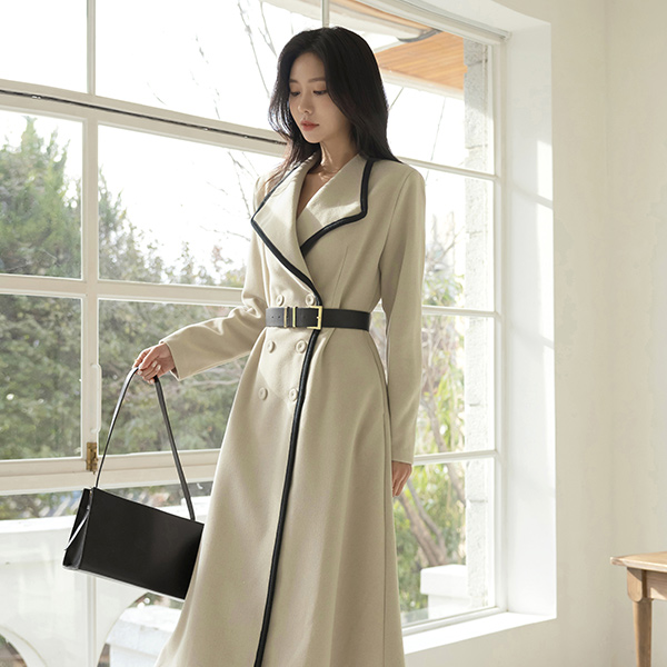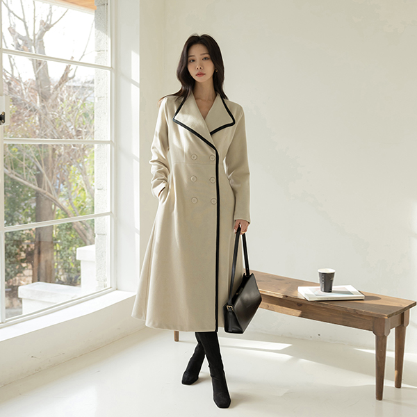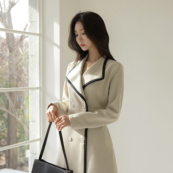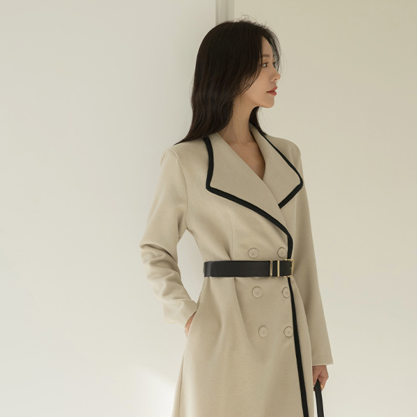 ワイド ウイングカラー 配色 ライン ダブルボタン ワンピース コート Ⅱ