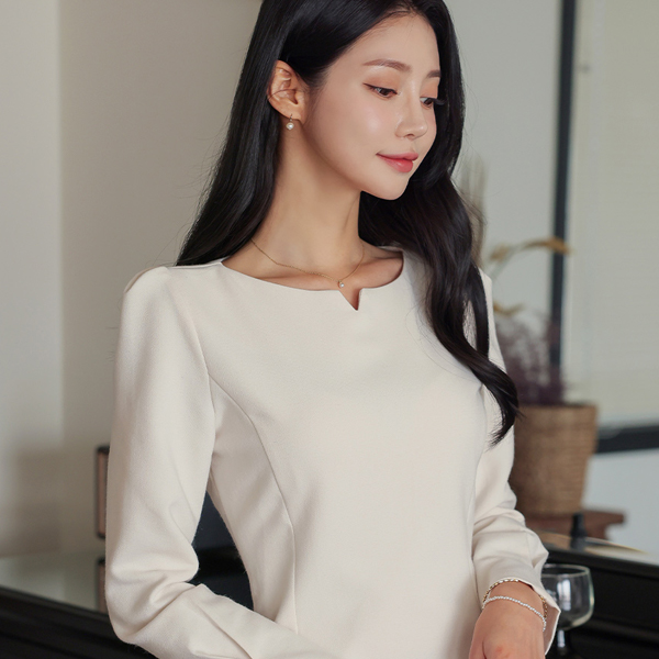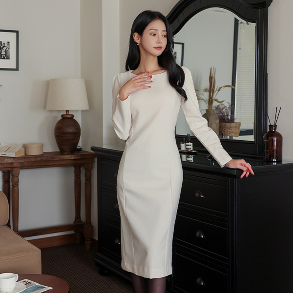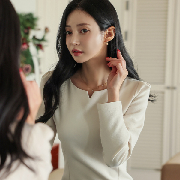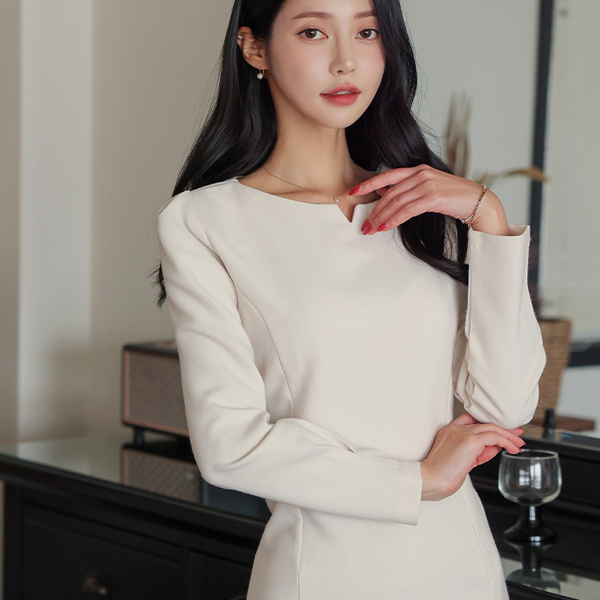 エレガンス V 切開ネック Hライン ワンピース (起毛裏地)