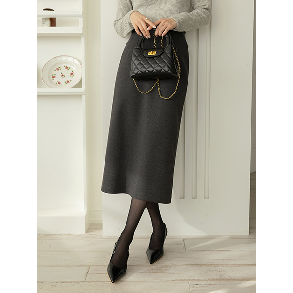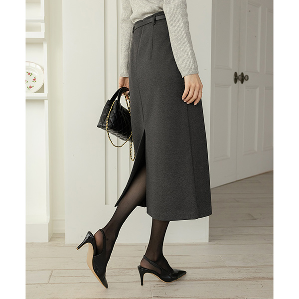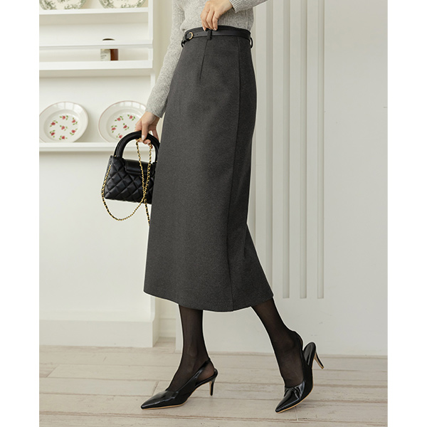 モダン&シンプル スタイル 毛織 スカート (ベルトSET)