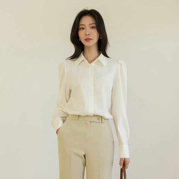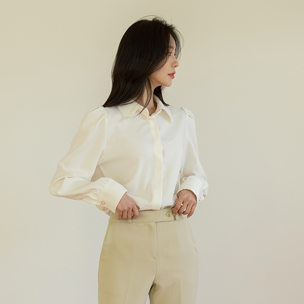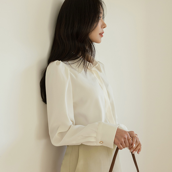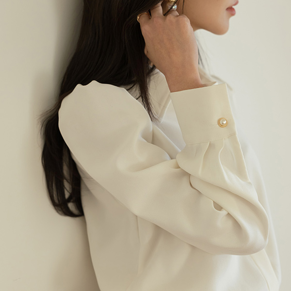 トップ 真珠 ボタン パフ ショルダー ブラウス