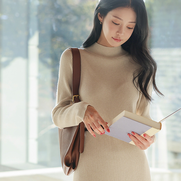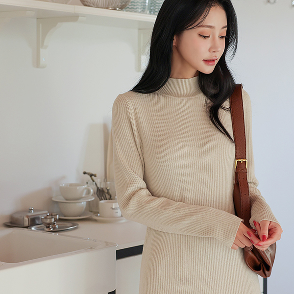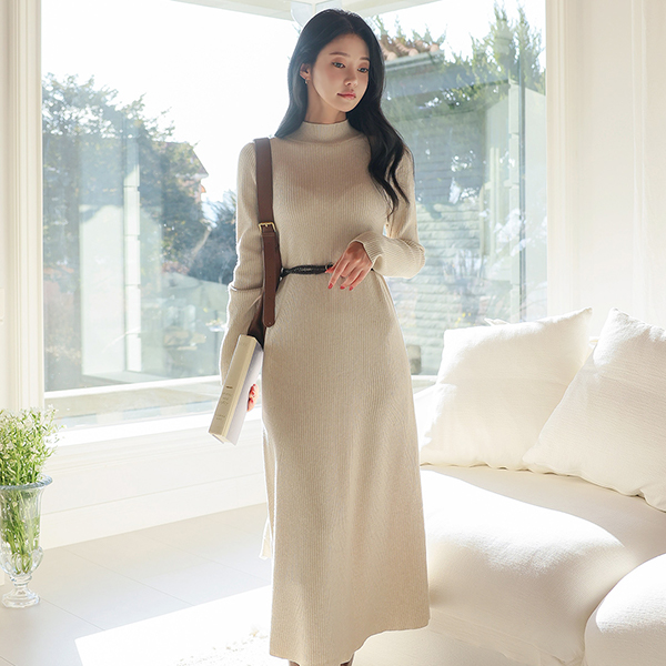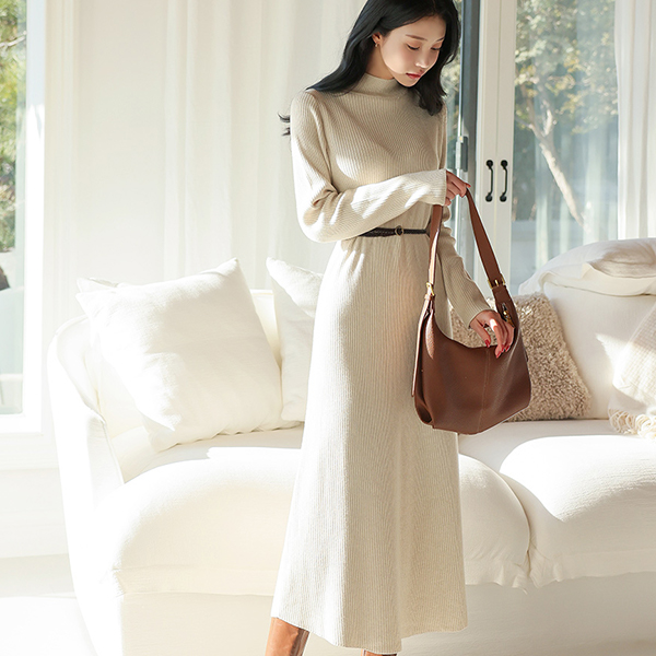 ハーフネック コール天 フレア ロング ニット ワンピース